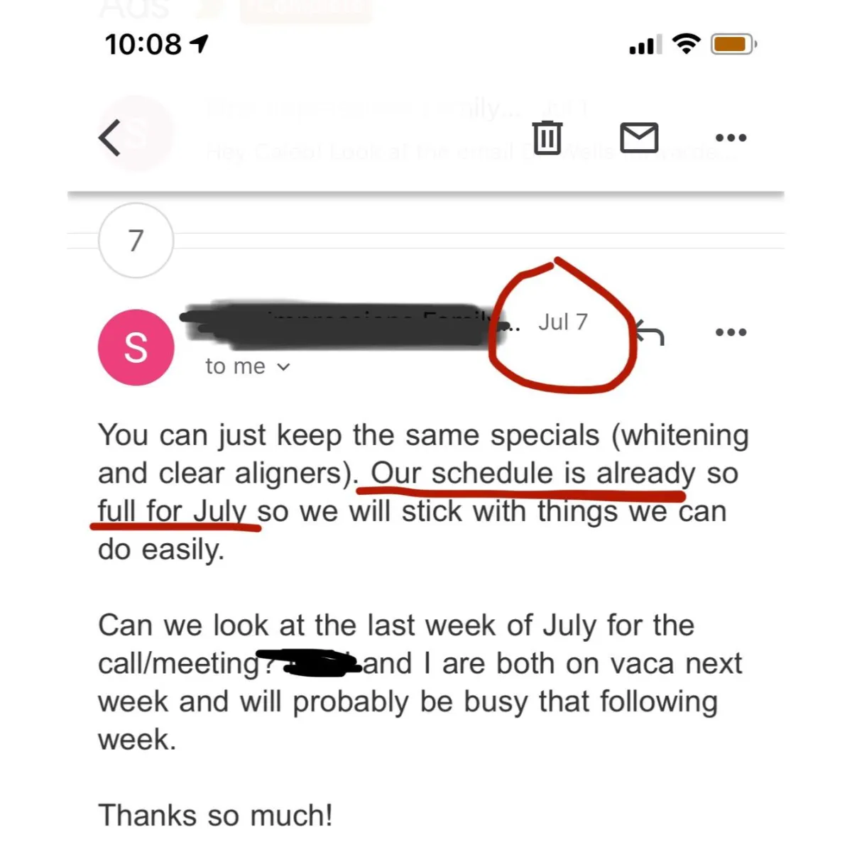 She let him handle her social media ads on her behalf. 30 days later she had a FULL pipeline worth $15,000 in qualified new patient opportunities. She closed $6,500 worth the first 30 days.